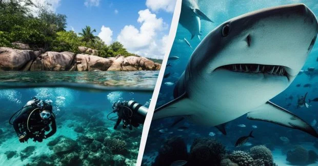 I subacquei sanno molto bene come comportarsi quando incontrano un pericoloso predatore. I sommozzatori pungono le traduzioni corrette sotto casa
